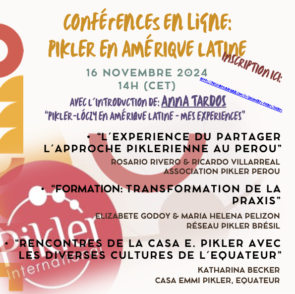 Profitez du tarif préférentiel et réservez votre place dès aujourd'hui. Obtenez des informations précieuses lorsque des collègues d'Amérique latine parleront de la manière dont l'approche Pikler est diffusée et développée dans leur région. Ne manquez pas la chance d'entendre les expériences personnelles d'Anna Tardos.